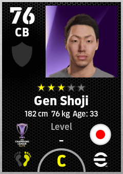 . Gen Shoji is a Center Back footballer from Japan who plays for Fc Machida Zelvia in eFootball 2026.