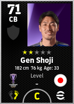 . Gen Shoji is a Center Back footballer from Japan who plays for Fc Machida Zelvia in eFootball 2026.