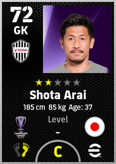 . Shota Arai is a Goalkeeper footballer from Japan who plays for Vissel Kobe in eFootball 2026.
