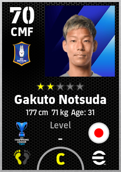 . Gakuto Notsuda is a Center Midfielder footballer from Japan who plays for Bg Pathum United Fc in eFootball 2026.