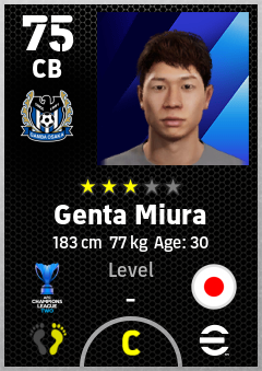 . Genta Miura is a Center Back footballer from Japan who plays for Gamba Osaka in eFootball 2026.