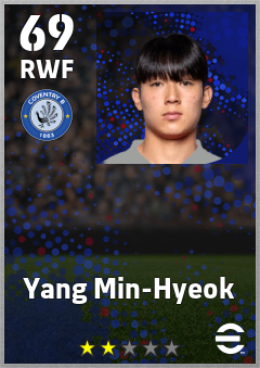 . Yang Min-Hyeok is a Right Wing Forward footballer from Korea Republic who plays for Coventry B in eFootball 2026.