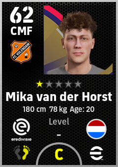 . Mika Van Der Horst is a Center Midfielder footballer from Netherlands who plays for Fc Volendam in eFootball 2026.