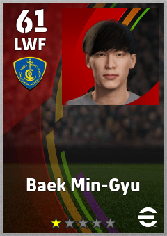 . Baek Min-Gyu is a Left Wing Forward footballer from Korea Republic who plays for Incheon Bb in eFootball 2026.