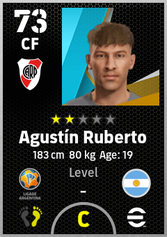 . Agustín Ruberto is a Center Forward footballer from Argentina who plays for Ca River Plate in eFootball 2026.