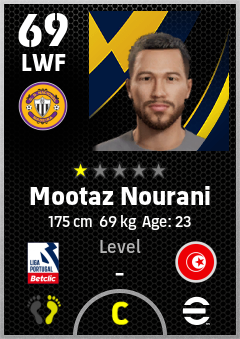 . Mootaz Nourani is a Left Wing Forward footballer from Tunisia who plays for Cd Nacional in eFootball 2026.