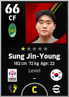 . Sung Jin-Young is a Center Forward footballer from Korea Republic who plays for Jeonju G in eFootball 2026.