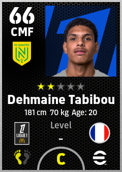 . Dehmaine Tabibou is a Center Midfielder footballer from France who plays for Fc Nantes in eFootball 2026.
