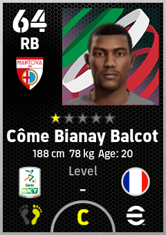 . Côme Bianay Balcot is a Right Back footballer from France who plays for Mantova Br in eFootball 2026.