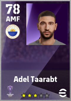. Adel Taarabt is a Attacking Midfielder footballer from Morocco who plays for Sharjah Fc in eFootball 2026.