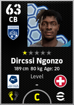 Dircssi Ngonzo is a Center Back footballer from Switzerland who plays for Lausanne Bw in eFootball 2026.