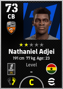 . Nathaniel Adjei is a Center Back footballer from Ghana who plays for Fc Lorient in eFootball 2026.
