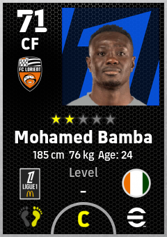 . Mohamed Bamba is a Center Forward footballer from Côte D'ivoire who plays for Fc Lorient in eFootball 2026.
