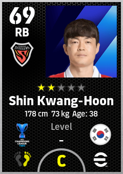 . Shin Kwang-Hoon is a Right Back footballer from Korea Republic who plays for Fc Pohang Steelers in eFootball 2026.