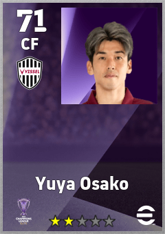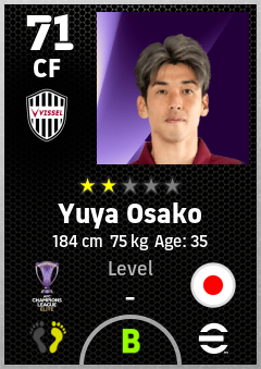 . Yuya Osako is a Center Forward footballer from Japan who plays for Vissel Kobe in eFootball 2026.