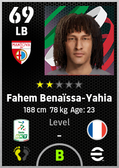 . Fahem Benaïssa-Yahia is a Left Back footballer from France who plays for Mantova Br in eFootball 2026.