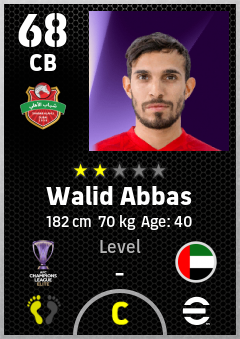 . Walid Abbas is a Center Back footballer from United Arab Emirates who plays for Shabab Al Ahli Dubai Fc in eFootball 2026.