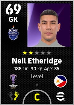 . Neil Etheridge is a Goalkeeper footballer from Philippines who plays for Buriram United F.c. in eFootball 2026.
