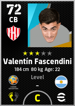. Valentín Fascendini is a Center Back footballer from Argentina who plays for Santa Fe Rb in eFootball 2026.