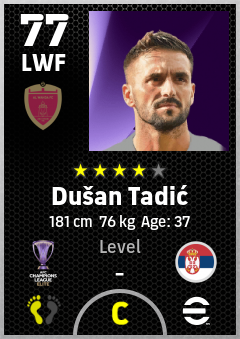 . Dušan Tadić is a Left Wing Forward footballer from Serbia who plays for Al Wahda Fc in eFootball 2026.
