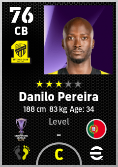 . Danilo Pereira is a Center Back footballer from Portugal who plays for Al Ittihad Club in eFootball 2026.