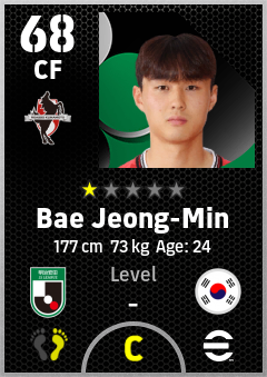 . Bae Jeong-Min is a Center Forward footballer from Korea Republic who plays for Roasso Kumamoto in eFootball 2026.