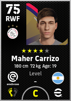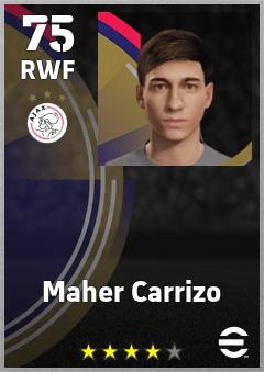 . Maher Carrizo is a Right Wing Forward footballer from Argentina who plays for Ajax in eFootball 2026.