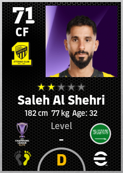 . Saleh Al Shehri is a Center Forward footballer from Saudi Arabia who plays for Al Ittihad Club in eFootball 2026.