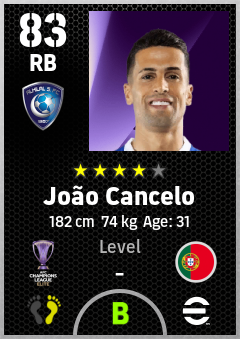 . João Cancelo is a Right Back footballer from Portugal who plays for Al Hilal Sfc in eFootball 2026.