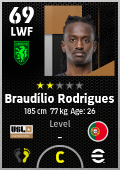 . Braudílio Rodrigues is a Left Wing Forward footballer from Portugal who plays for Lexington Sc in eFootball 2026.