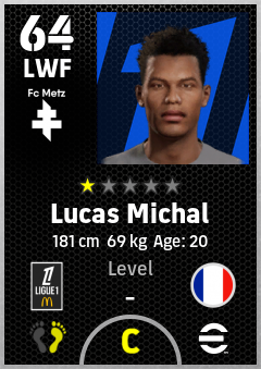 . Lucas Michal is a Left Wing Forward footballer from France who plays for Fc Metz in eFootball 2026.