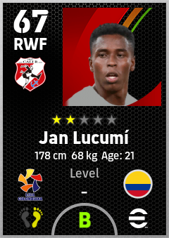. Jan Lucumí is a Right Wing Forward footballer from Colombia who plays for Cali R in eFootball 2026.