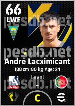 . André Lacximicant is a Left Wing Forward footballer from Portugal who plays for Gd Estoril Praia in eFootball 2026.