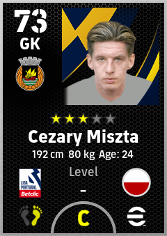 . Cezary Miszta is a Goalkeeper footballer from Poland who plays for Rio Ave Fc in eFootball 2026.