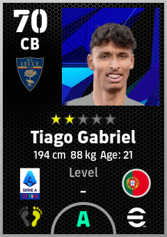 . Tiago Gabriel is a Center Back footballer from Portugal who plays for Lecce Gr in eFootball 2026.
