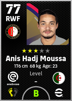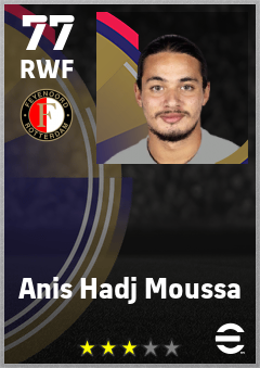 . Anis Hadj Moussa is a Right Wing Forward footballer from Algeria who plays for Feyenoord in eFootball 2026.