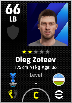 . Oleg Zoteev is a Left Back footballer from Uzbekistan who plays for Fc Andijan in eFootball 2026.