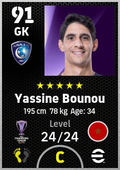 .Yassine Bounou is a Goalkeeper footballer from Morocco who plays for Al Hilal Sfc in eFootball 2026.