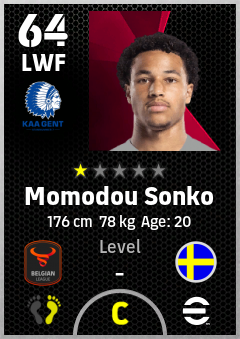 . Momodou Sonko is a Left Wing Forward footballer from Sweden who plays for Gent Bw in eFootball 2026.