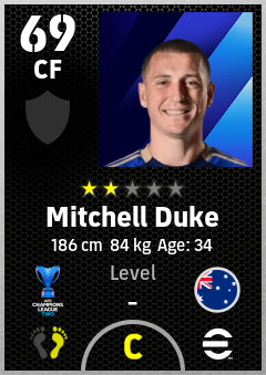 . Mitchell Duke is a Center Forward footballer from Australia who plays for Macarthur Fc in eFootball 2026.
