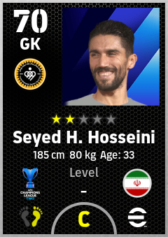 . Seyed H. Hosseini is a Goalkeeper footballer from Ir Iran who plays for Sepahan Sc in eFootball 2026.
