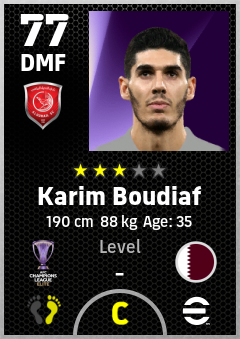 . Karim Boudiaf is a Defensive Midfielder footballer from Qatar who plays for Al Duhail Sc in eFootball 2026.