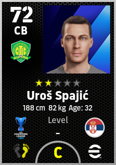 . Uroš Spajić is a Center Back footballer from Serbia who plays for Beijing Fc in eFootball 2026.