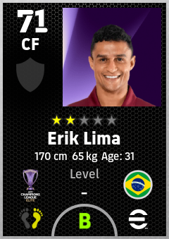 . Erik Lima is a Center Forward footballer from Brazil who plays for Fc Machida Zelvia in eFootball 2026.