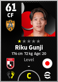 . Riku Gunji is a Center Forward footballer from Japan who plays for Shimizu S-Pulse in eFootball 2026.