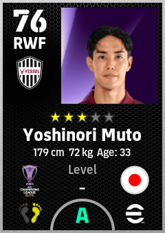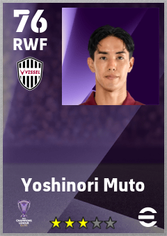 . Yoshinori Muto is a Right Wing Forward footballer from Japan who plays for Vissel Kobe in eFootball 2026.