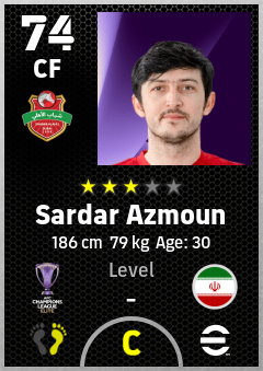 . Sardar Azmoun is a Center Forward footballer from Ir Iran who plays for Shabab Al Ahli Dubai Fc in eFootball 2026.