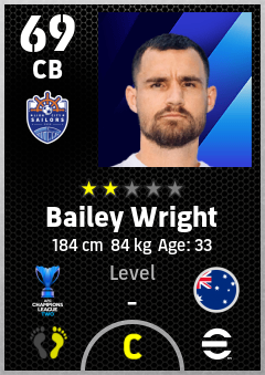 . Bailey Wright is a Center Back footballer from Australia who plays for Lion City Sailors Fc in eFootball 2026.