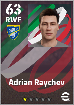 . Adrian Raychev is a Right Wing Forward footballer from Bulgaria who plays for Frosinone Ga in eFootball 2026.