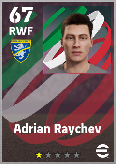 . Adrian Raychev is a Right Wing Forward footballer from Bulgaria who plays for Frosinone Ga in eFootball 2026.
